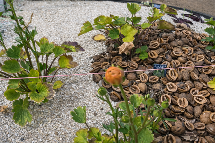 花壇の中央に向かうほど土が豊かになり、植物の種類と大きさもそれに連動しています。