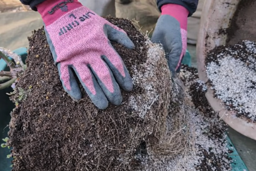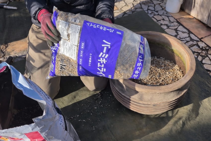 ただし、土がグズグズの状態を嫌うため、バーミキュライトを混ぜて水はけを良くします。