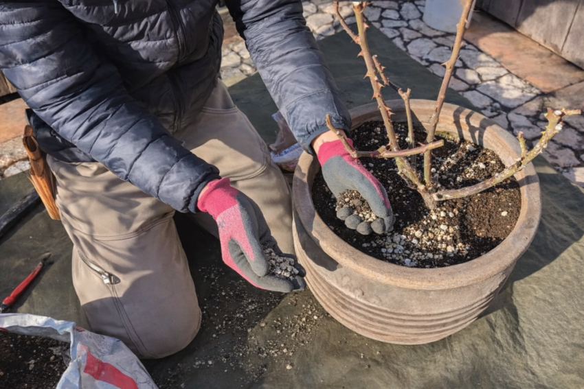 バラを鉢から抜いて土を入れ替えるのは、2年に1回が理想です。