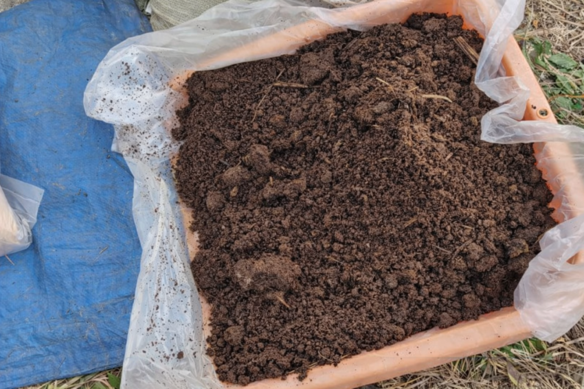 この牛糞堆肥は仕込みから3ヶ月ほど経った状態で、匂いはほとんど感じられません。