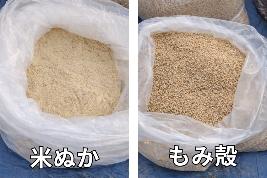 長野の農家さんから、定番の米ぬかともみ殻を分けていただきました。