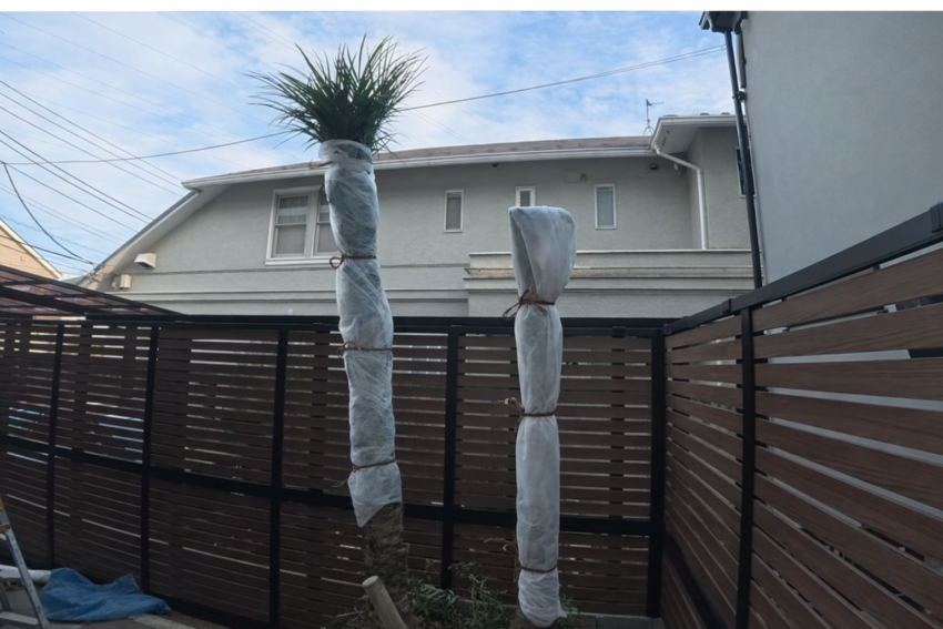 例えば、フェニックス・ロベレニーは0℃以下で枯れてしまいますが、不織布を巻けばマイナス5℃程度まで耐えられるようになります。