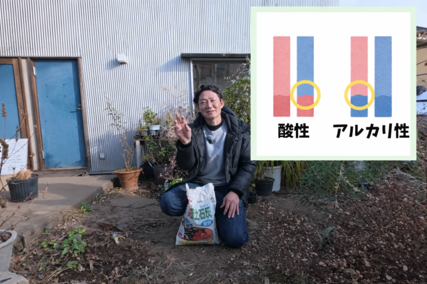苦土石灰を入れるとアルカリ性に寄り、酸性だったものを中性に戻します。