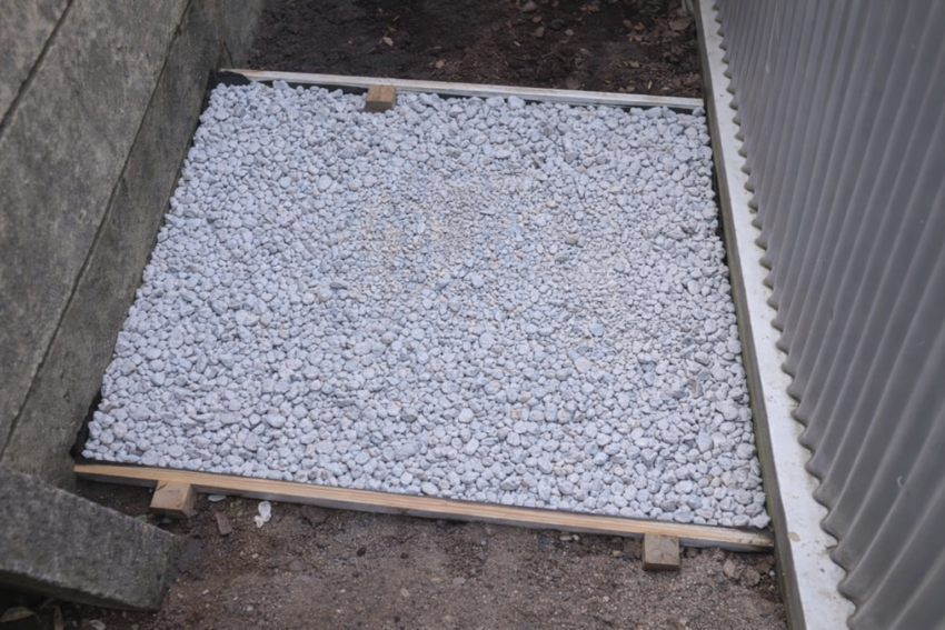 地面を平らに整え、3〜4cmの厚さで固まる土を敷き詰めます。