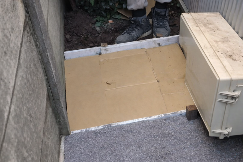- ダンボールを広げて地面に敷く(ガムテープは除去)