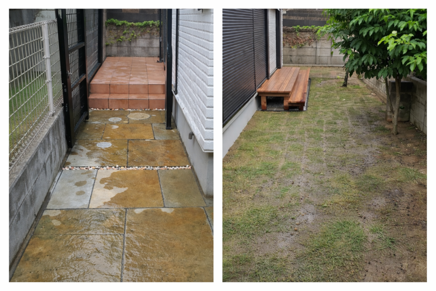 しかし、ウッドチップが古くなり、虫が発生するようになったことから、庭のリフォームを決断されたのです。発生していたのはムカデのような虫で、シロアリなどの深刻な害虫ではありませんでしたが、庭でワンちゃんを遊ばせるには気になる状態でした。