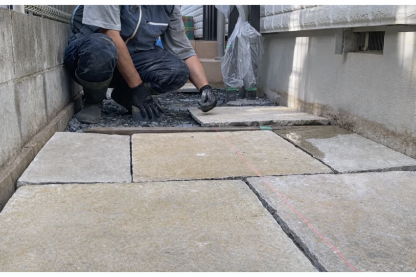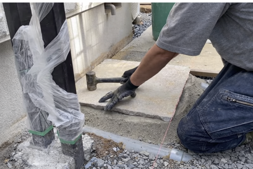 石の平板をセメントで固定する施工は、正しい手順で行えばDIYでも十分可能です。