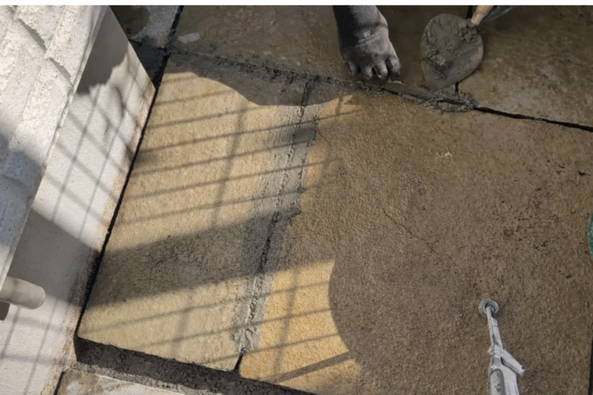石と石の間の目地(隙間)にモルタルを入れましょう。