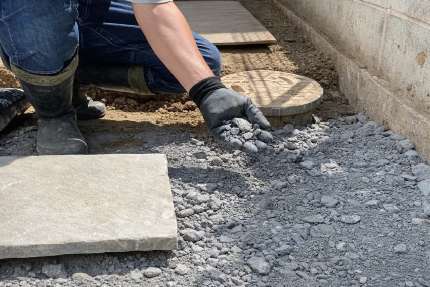 下地作り:砕石の敷き方と転圧