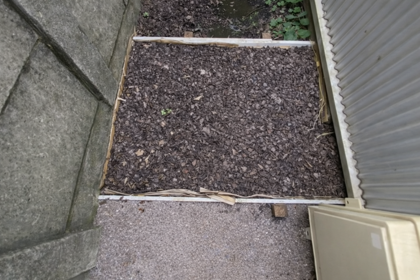 防草シートを壁際で立ち上げて施工しても、壁との間にはどうしても隙間ができます。
