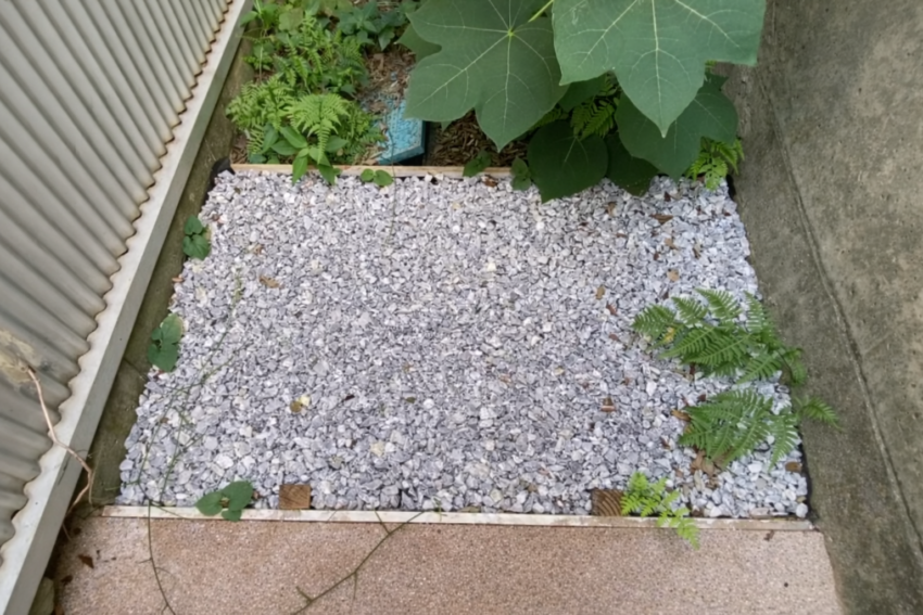 最も一般的な防草シート+砂利の組み合わせですが、2ヶ月後の結果は予想通りでした。
