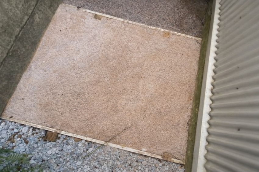今回の実験場所は、庭づくりぐりんぐりんの事務所裏の通路です。